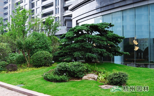 该工程位于江苏省无锡市,距太湖约10km,由于是改造项目,现场还保留着原有苗木和铺装,更加有效的结合实际施工,在符合设计景观效果的前提下,做到资源不浪费,是本工程的一个亮点。