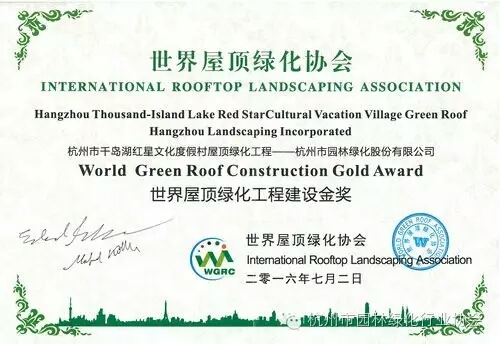 【杭州市园林绿化行业协会微信平台】我会会员单位——彩神手机官方网站承建项目荣获“世界屋顶绿化工程建设金奖”