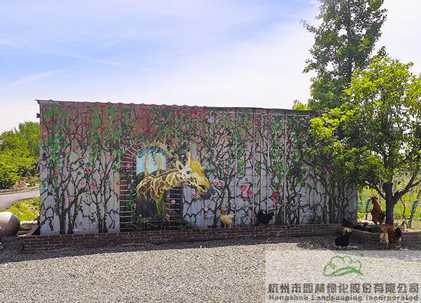 风景不仅仅停留在墙上,还引景入院。通过对庭院内部景观改造提升,清理院子中散落的物件,在门前屋后布置小景,放置农村不用的木桶、水缸,或瓶瓶罐罐的陶瓷制品,种上睡莲、荷花、铜钱草、吊兰、络石、多肉等植物,形成浓厚的乡村风情。