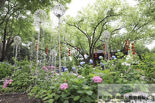 作为本次活动的赞助单位,彩神手机官方网站联手绣球花产业国家创新联盟,在城隍阁古树平台布置了《花落花开,年华度》为主题的八仙花景观展示区,“阁楼观湖二十年,绣球花灯满堂前”,通过代表浪漫与爱情之美的绣球花境组团,结合错落有致的景观挑灯和蜿蜒向前的时间轴序,营造出繁花如绣、前程似锦的美好寓意,以此向城隍阁开放20周年献礼。