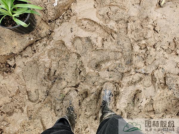 本方案落地地块由于主要观赏面与整体地势相反,地块易积水,且施工前期均为雨水天气,种植土壤为黏质土,保水性极好,如同“弹簧土”一般,为前期地形整理工作增添了不少难度。施工团队通过人工排水、设置排水缓坡、埋置排水管等多种方式扭转地势,解决花境景观观赏性与花境内部排水等问题。