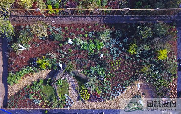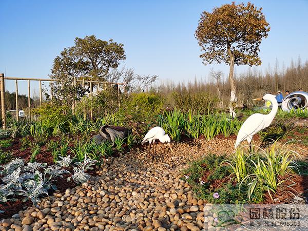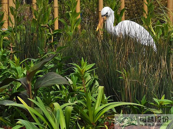 “泽·颂”花境景观选取了湿地中三种类型,分别以木本花境、观赏草混搭宿根植物、枯木苔藓三种植物景观模式,模拟自然湿地的灌丛、草甸、藓类三种不同类别湿地景观,通过丰富的花境植物材料及水鸟造型、枯木等的应用,表现近几年来建设新时代美丽杭州、打造“湿地水城”、提升生态人文景观建设过程中取得的成果。