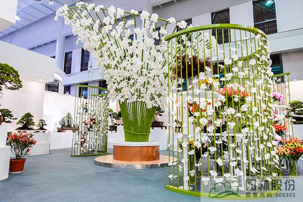 馆内用大量的白色蝴蝶兰花朵和仿竹构筑物打造的立体景观,在展示浙江竹产业发展的同时,更展现了“绿水青山就是金山银山”理念在浙江的生动实践。