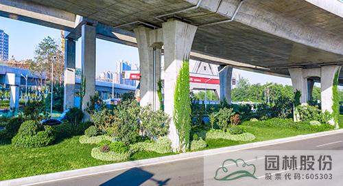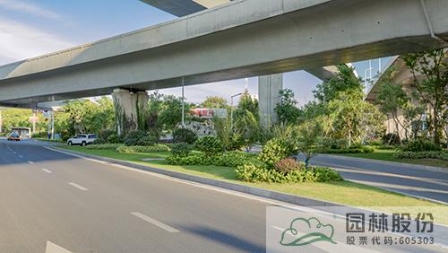 项目绿化施工主要包括道路分车带、道路两侧带状绿地、节点绿地、高架桥垂直绿化等区块。每个区块根据其功能与特色,通过不同植物配置,营造丰富景观。