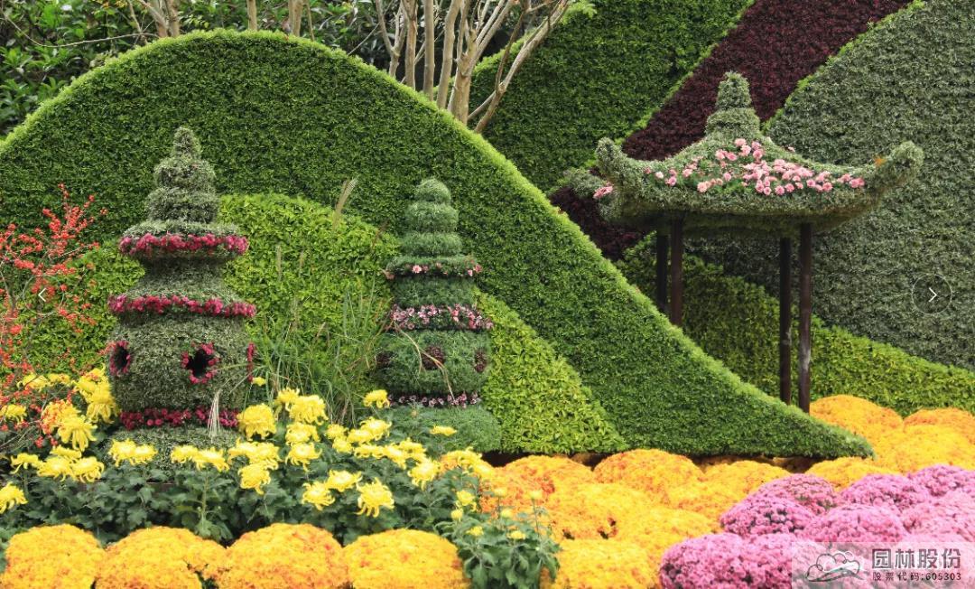 作为一个优秀的现场负责人,江晓钰的匠心打造,彰显着她的高品味。区别于去年的绿雕色彩变化,本次绿雕造型的群山更彰显立体感。色带交汇的地方,采用金叶佛甲草、白草等颜色较浅的植物材料,构勒边线,形成山峦叠嶂。山体的顶层曲线上,采用混栽的方式,模拟山体轮廓明暗变化,表达山体透视效果。