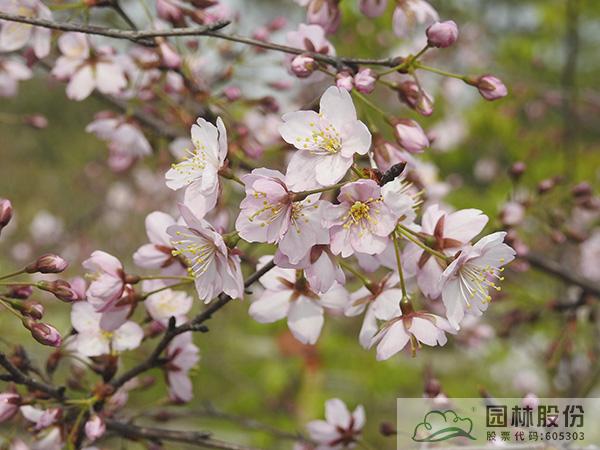 这些樱花品种花色丰富,特色各异,其中,‘纤秀’为落叶小乔木,树皮灰白色,小枝灰棕色;叶片卵状椭圆形;花先叶开放,总状伞形花序,每花序有花3~5朵,稀2朵;花梗长12~17mm,绿色;花瓣白色,或花瓣边缘粉色,中下部白色,花径2.5~2.8cm,核果红色,成熟后直径约1cm。花期2~3月。