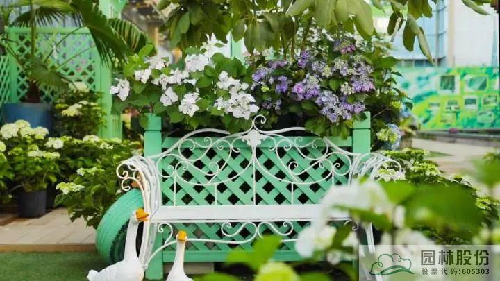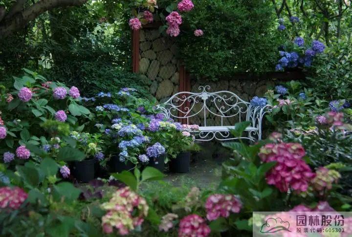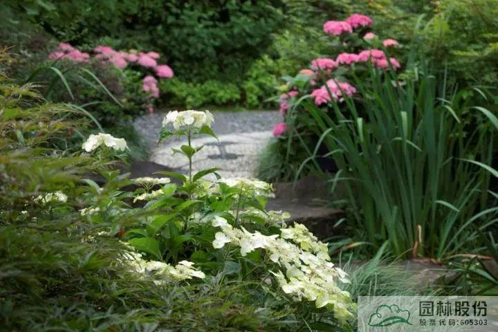 ▲彩神(中国)自主选育的‘青山’系列绣球在画境·青山湖花园中心室外景观展示区中的应用