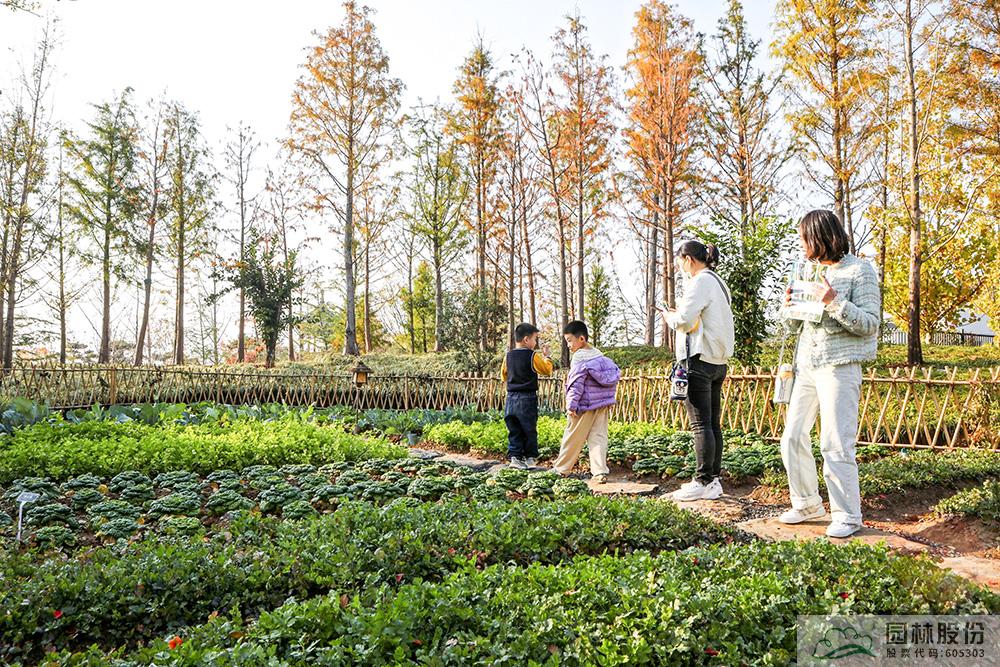 听完美丽浙江的精彩故事,继续前行。推开后院半掩的木门,园内一畦畦绿油油的香菜、紫甘蓝、大白菜、莴苣、芹菜、小葱等长势喜人,山楂、石榴、香泡、柿子等果子在枝头飘散着淡淡的果香,银杏、枫树、黄栌等色叶树红黄交错,乡土植物的配置强化了民居空间的山地氛围和景观特色,生态菜园景观勾勒出钱塘人家的现代田园风情。