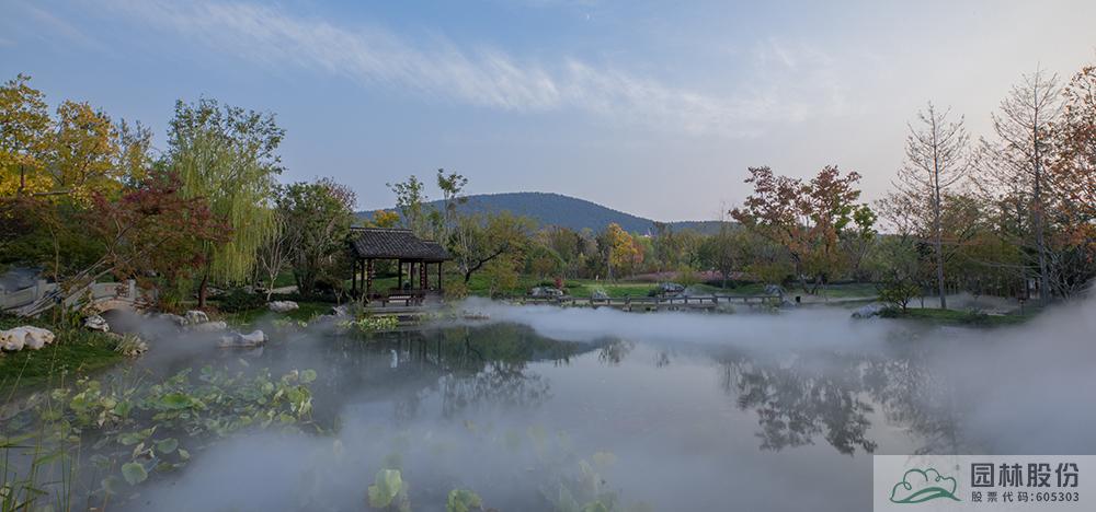 为保证园内水质干净清澈,水系采用了两套循环系统。一套是内循环,将湖里的水抽到山顶上,沿溪流而下,中间逐级补水;由于湖的体量较大,湖内单独设一套循环系统,保证水体流动,同时在湖里放养了螺丝、杂鱼,周边种植水生植物,确保水质效果。)