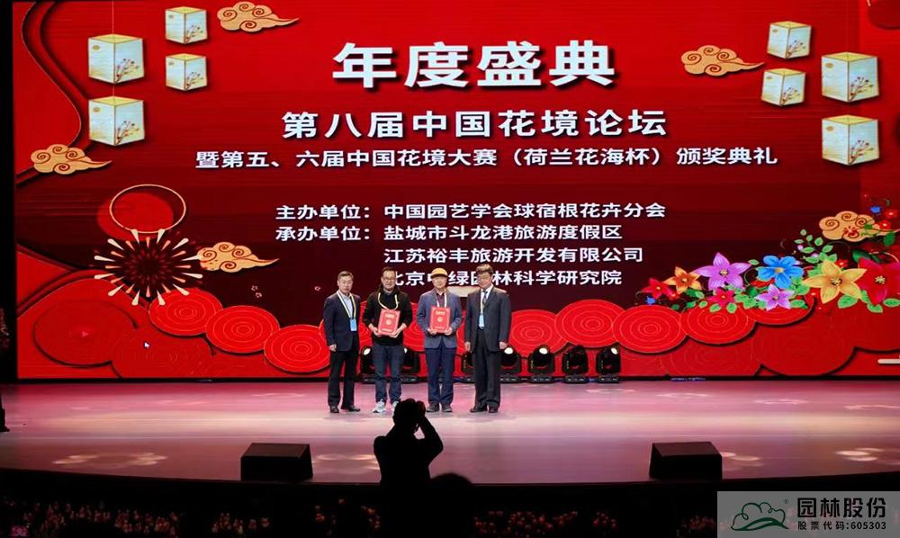 彩神(中国)副总裁李寿仁(左二)上台领取特级花境师证书
