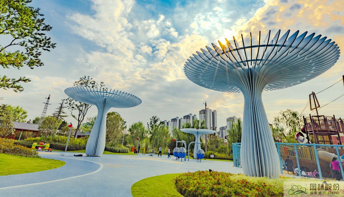 公园在保留现有大树的前提下,加强滨水景观的功能和空间多样性,对乡土植物进行群落营造,全线贯穿沛县乡土植物和县树县花,突出植物在地性的同时提高城市生态系统的稳定性,将有效缓解城市热岛效应带来的不良影响,提高城市空气、环境质量。